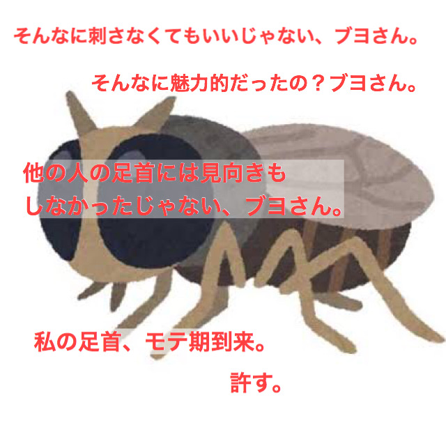 昨年の夏にあなたさまに十数か所に渡って足首を刺されて、早6か月が経とうとしておりますが、いかがお過ごしでしょうか。
