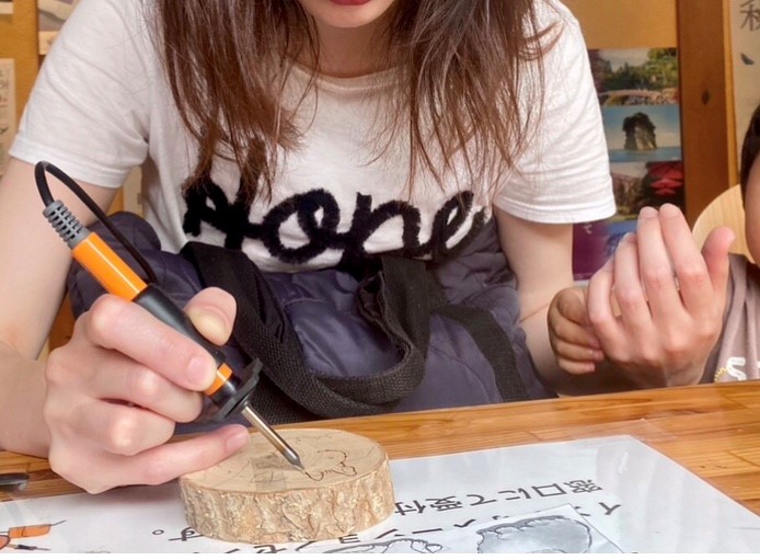 好きな木の板を選んで熱く熱したペンで下書きをなぞります。