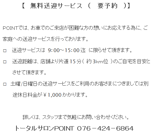 『POINTに来てみたいっていう友達がいて、紹介してあげたいんだけど、その友達が足を怪我をしてしまい、車の運転ができないのよ・・・